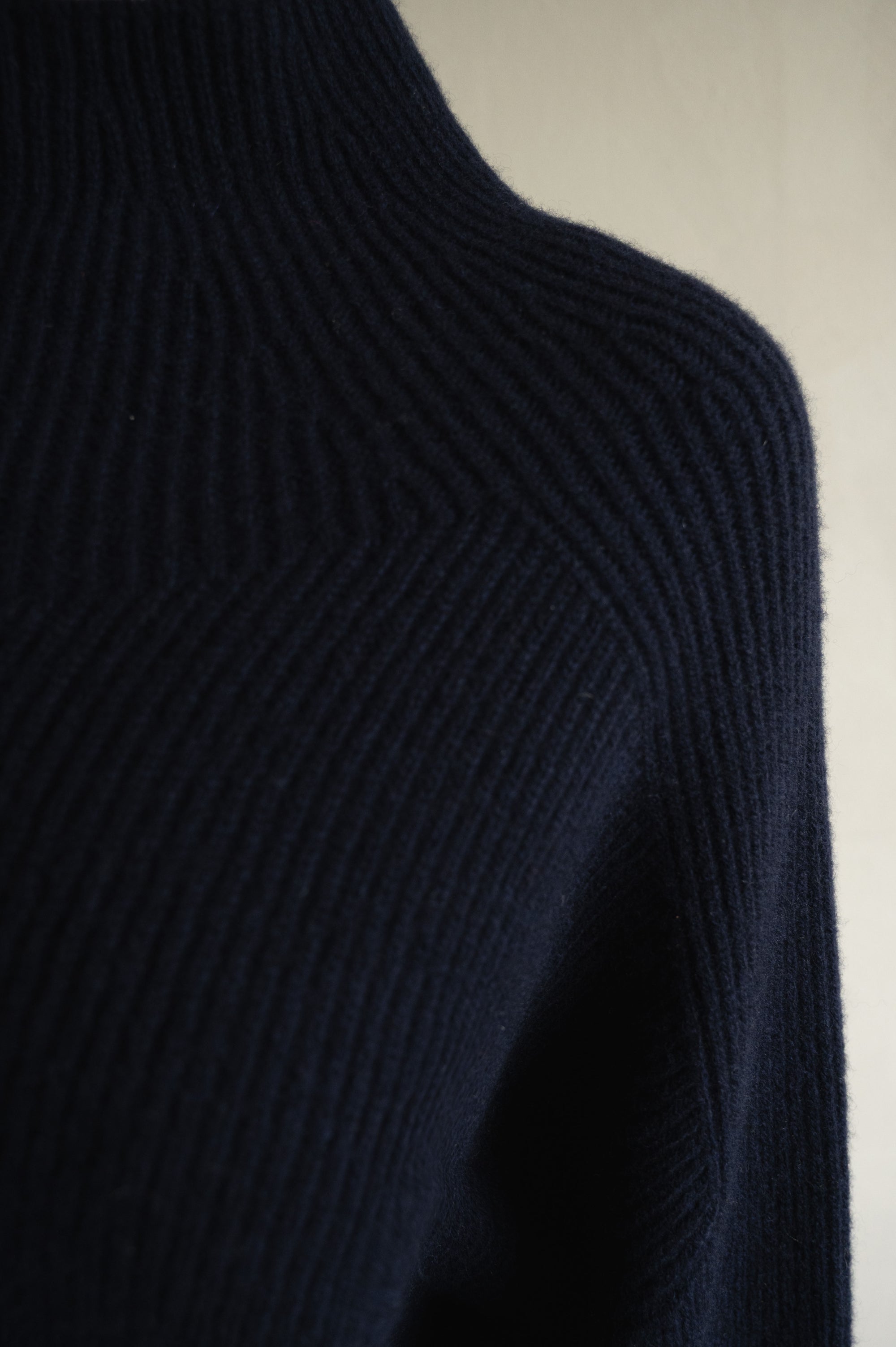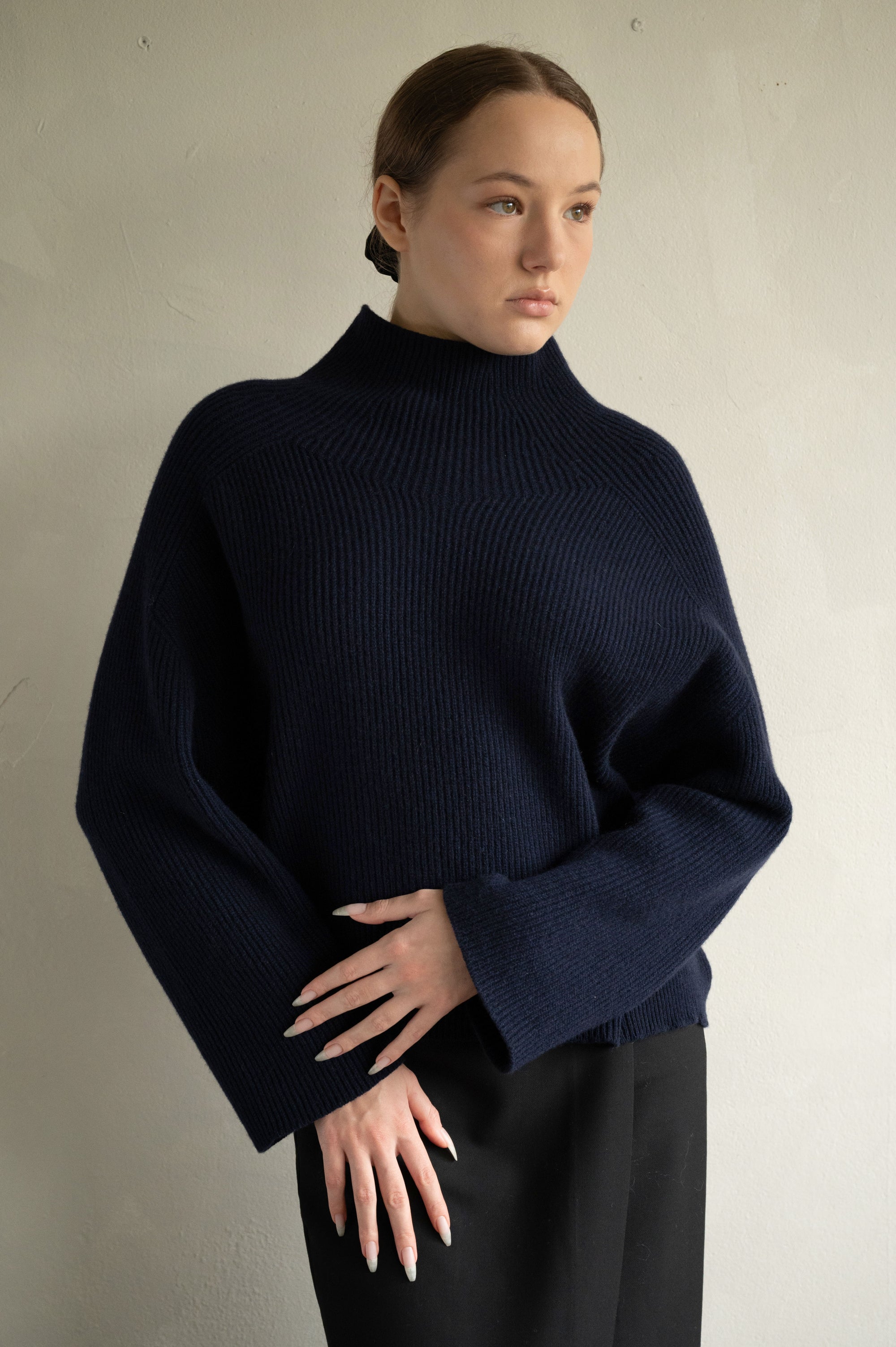 Mohair & Silk Cropped Sleeves Sweater in Navy