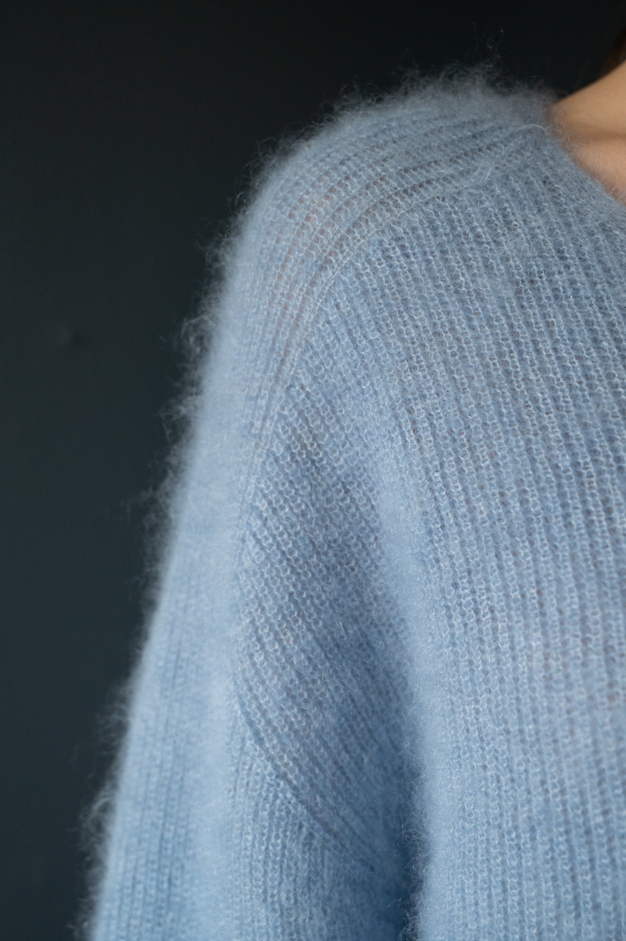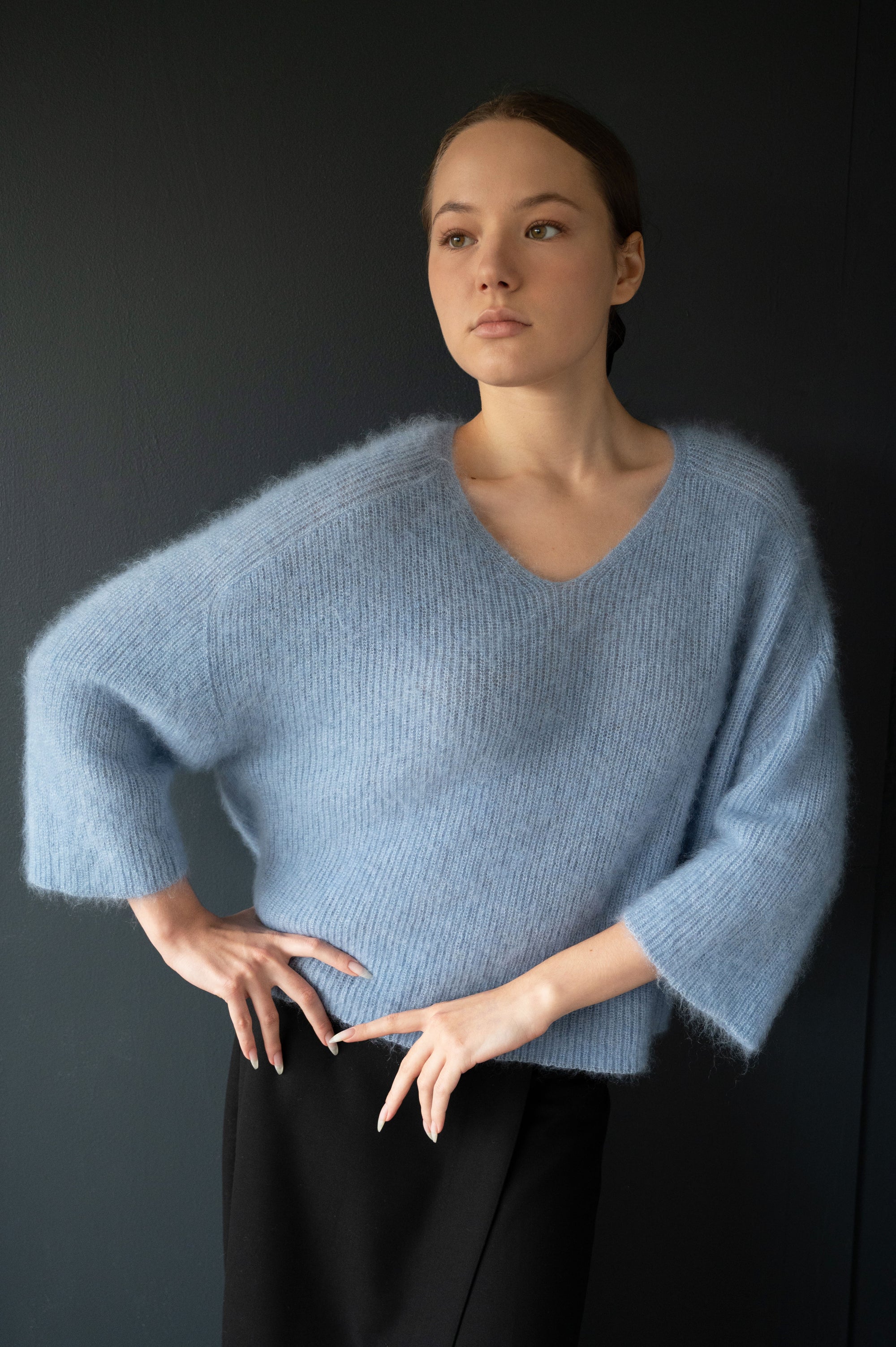 Mohair & Silk Cropped Sleeves Sweater in Sky Blue