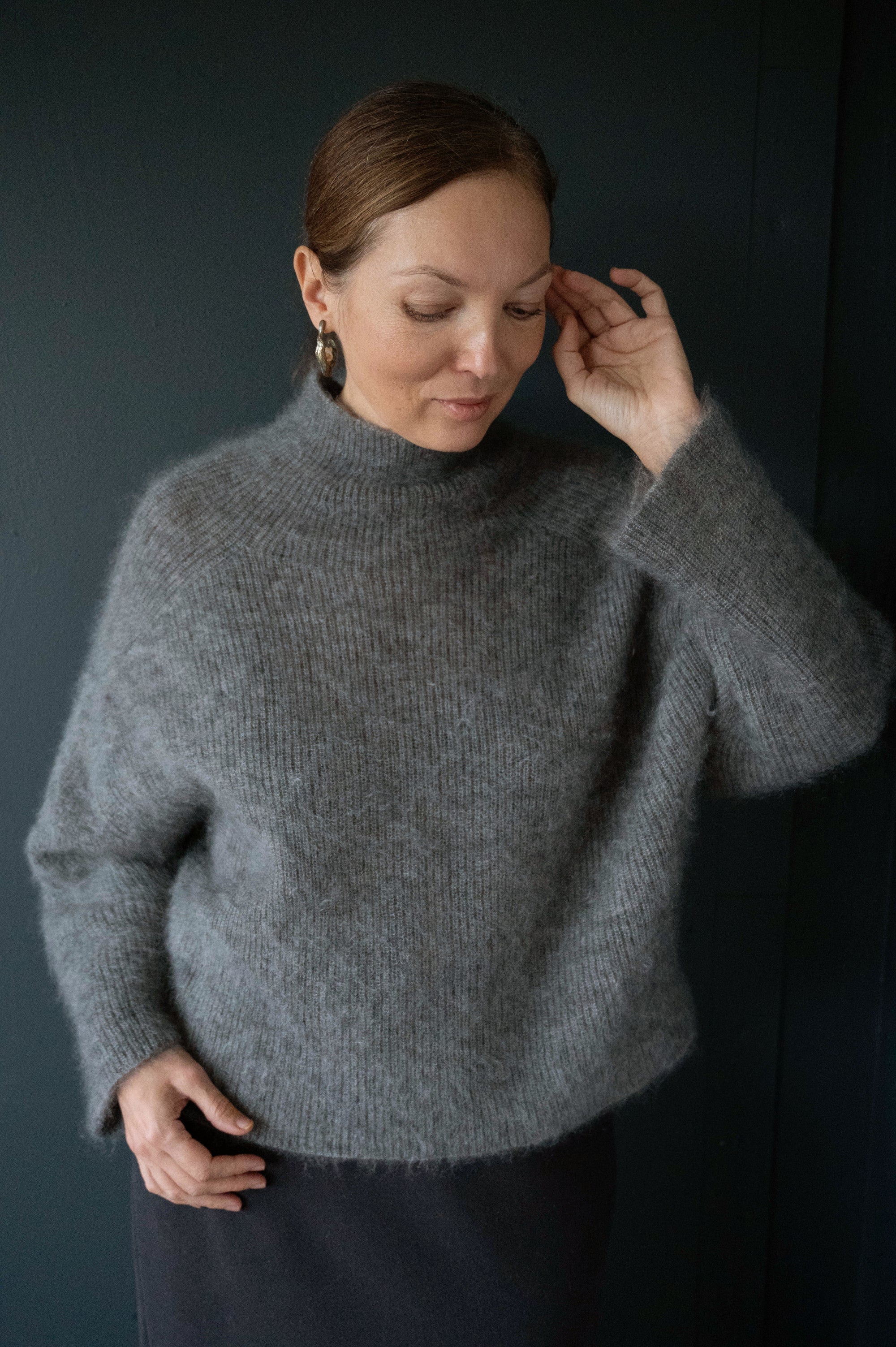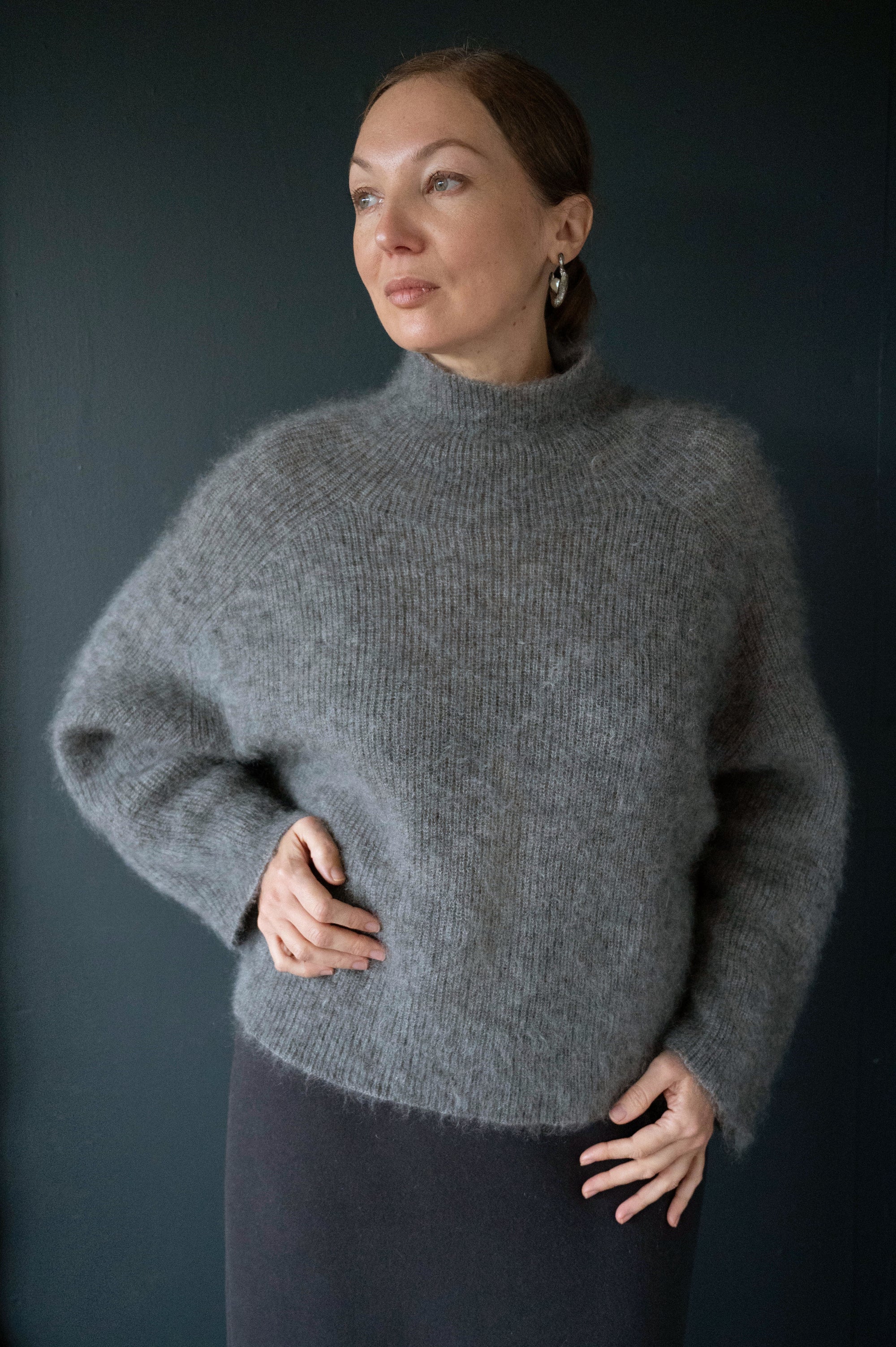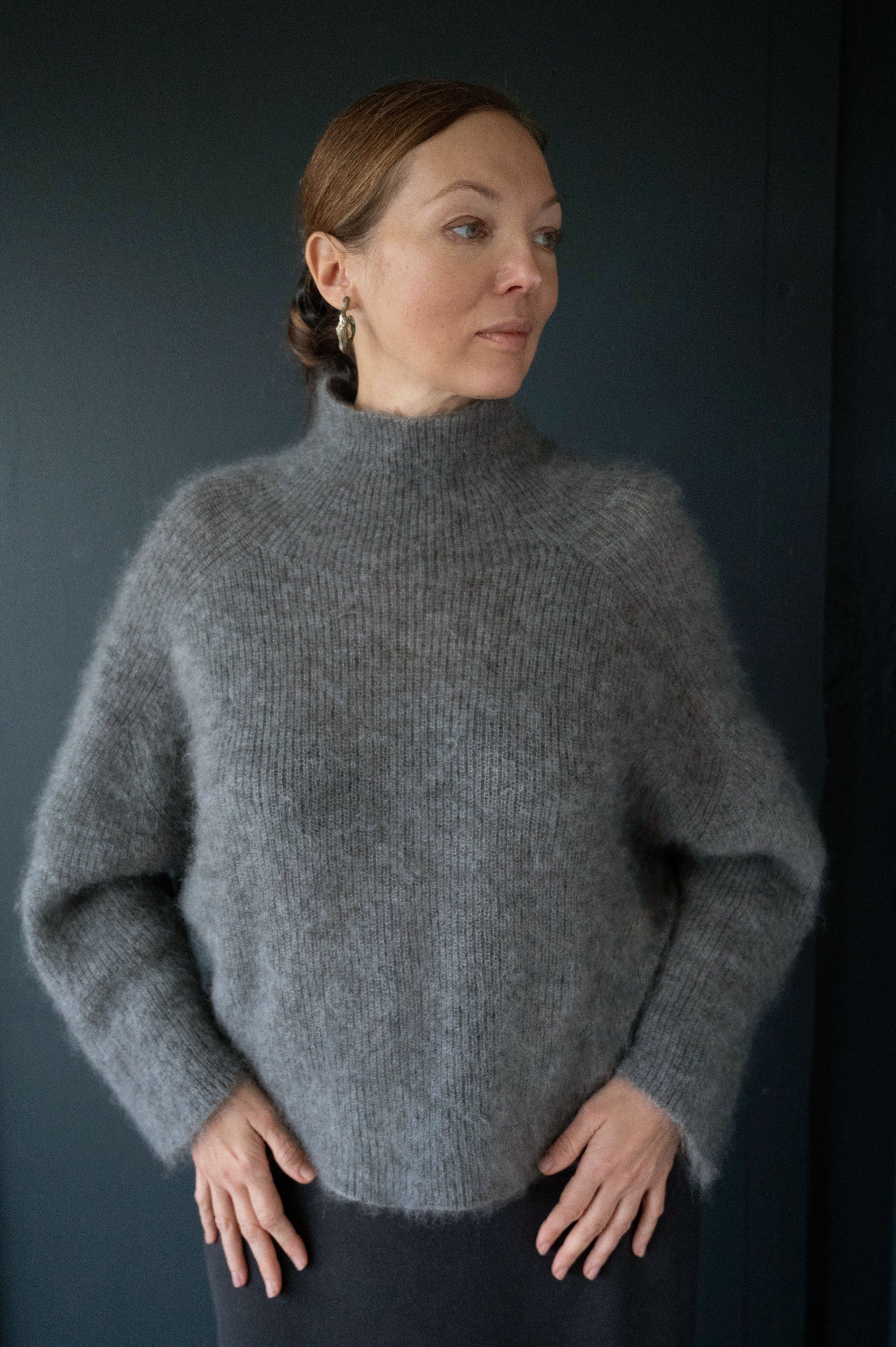 Mohair & Silk Cropped Sleeves Sweater in Grey